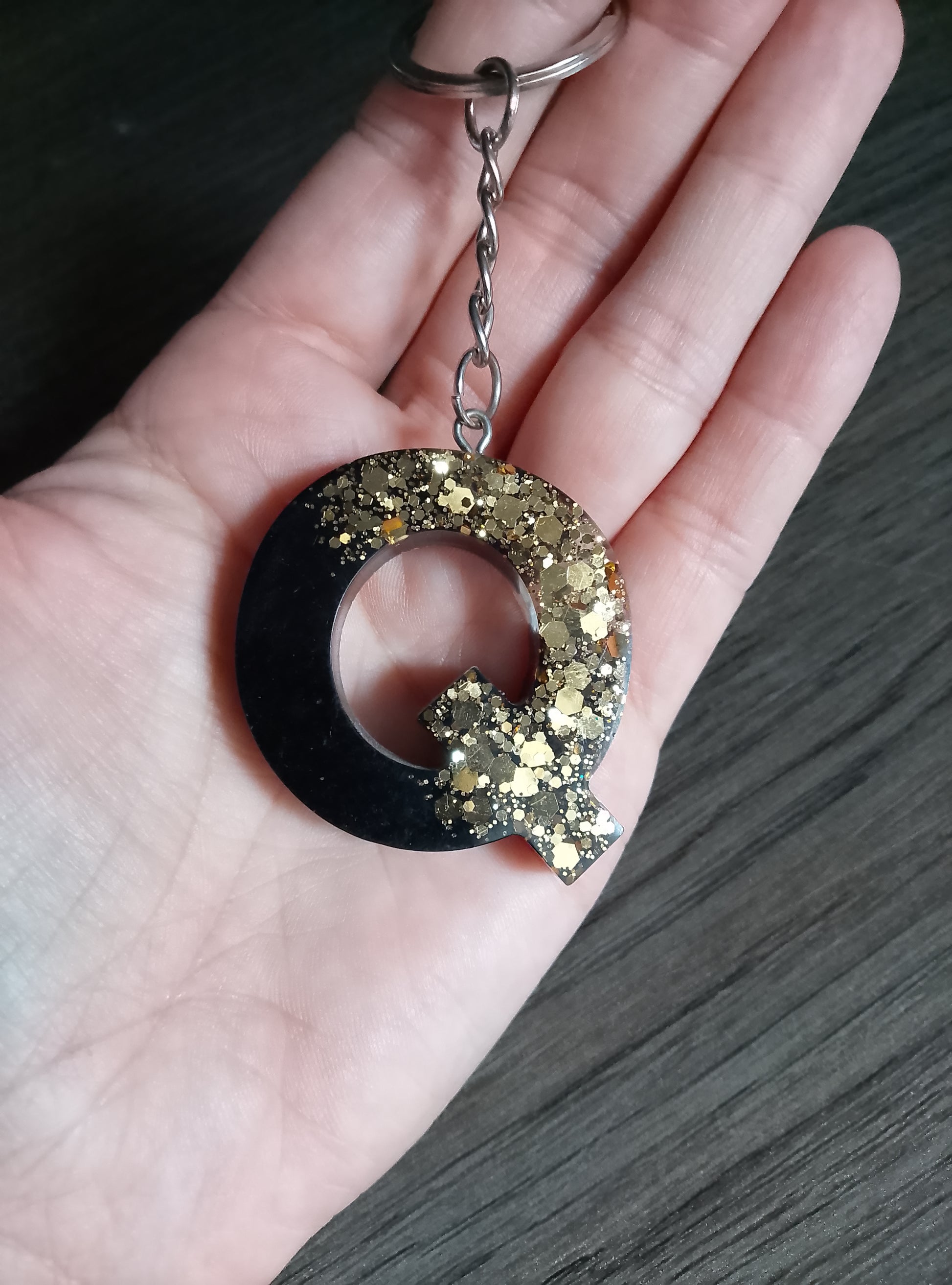 porte clé Q noir et paillette or